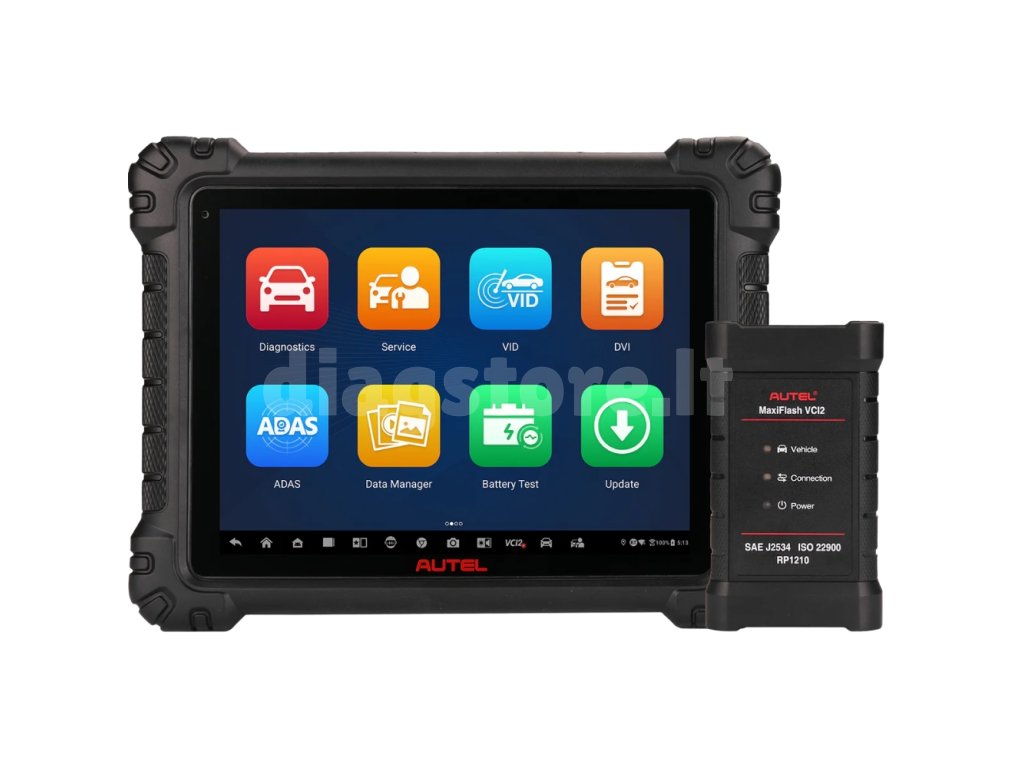 Autel MaxiSys MS909S2 yra vienas iš pažangiausių MaxiSys serijos diagnostikos sistemų ir yra skirtas profesionaliems automobilių servisams, dirbantiems su moderniais automobiliais ir sudėtingais komunikacijos protokolais. Jis siūlo visapusišką visų valdymo blokų diagnostiką, pažangią duomenų analizę, ECU topologinį vaizdą (Topology 3.0) ir internetinio kodavimo bei ECU programavimo palaikymą. Sistemos pagrindas yra galingas planšetinis kompiuteris su operacine sistema Android 13, aštuonių branduolių procesoriumi, 12 GB RAM ir 256 GB vidine atmintimi, kuris užtikrina greitą reakciją net dirbant su dideliais gyvais duomenimis. Į komplektą įeina „MaxiFlash VCI2“ sąsaja, palaikanti ryšį per USB, „Wi-Fi“ ir „Bluetooth“ ir atitinkanti SAE J2534, ISO 22900 ir RP1210 standartus „PassThru“ programavimui. Svarbus privalumas yra AI balso asistentas, kuris leidžia valdyti diagnostiką be rankų (paleisti autoskeną, atidaryti aptarnavimo funkcijas, aktyvius testus ir pan.). MS909S2 taip pat palaiko pažangią skaitmeninę transporto priemonės apžiūrą (DVI), įskaitant darbą su nuotraukomis, padangų matavimą ir serviso ataskaitų kūrimą.