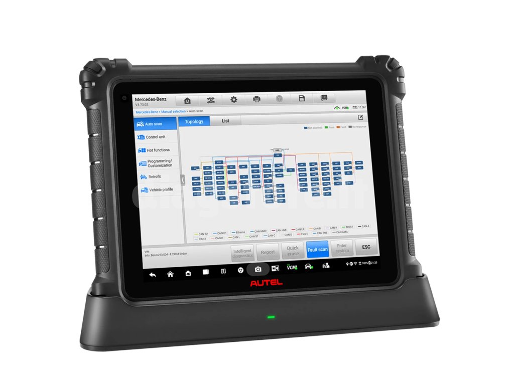 MaxisYS Ultra EV yra Autel flagmanas, palaikantis pažangią elektromobilių diagnostiką. Jis turi daugiausiai funkcijų, pažangiausią programinę įrangą ir palaiko naujausius automobilius. Autel MaxiSYS Ultra Autel MaxiSYS Ultra atlieka išsamią daugumos Europos, Azijos ir Amerikos automobilių visų blokų diagnostiką kartu su pažangiomis aptarnavimo funkcijomis. Prietaisas gali nuskaityti ir ištrinti visų blokų gedimų kodus, vaizduoti tiesioginius duomenis ir atlikti aktyvius bandymus, taip pat gali nuskaityti parengties kodą, iš naujo nustatyti aptarnavimo intervalus, diagnozuoti ir regeneruoti DPF filtrą, atlikti pagrindinius droselinės sklendės nustatymus, iš naujo nustatyti automatinės pavarų dėžės adaptacijas, atlikti pagrindinę TPMS diagnostiką, registruoti ir koduoti akumuliatorių, atlikti purkštukų kodavimą, raktų ir nuotolinio valdymo kodavimą ir daugelį kitų užduočių. Taip pat palaikomas blokų blykstelėjimas, kodavimas ir pritaikymas bei kodavimas ir pritaikymas internetu. Taip pat įtraukiamas paslėptų transporto priemonės funkcijų ir blokų topologijos (žemėlapių) atrakinimas.