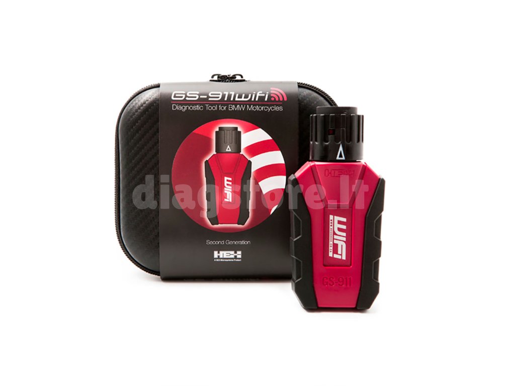 GS-911-wifi yra naujos kartos populiari BMW motociklų diagnostika. Ji palaiko naujausią K001 platformą, kuri naudojama K1600GT/GTL, R1200GS LC, R1200GS Adv ALC, R1200GS Adv ALC, R1200RT LC, S1000R, C-evolution ir kituose modeliuose. Kaip ir ankstesnės kartos automobilyje, diagnostikos funkcijos suskirstytos į dvi dalis - Emergency ir Service. Diagnostiką galima prijungti prie kompiuterio per USB arba "Wi-Fi" ryšį. O jei esate kelyje, GS911 taip pat galima valdyti mobiliuoju telefonu arba planšetiniu kompiuteriu. Šis modelis turi 10 kontaktų jungtį. Norėdami prijungti motociklus su OBD-II lizdu, turite įsigyti adapterį arba pasirinkti modelį su OBD-II jungtimi.