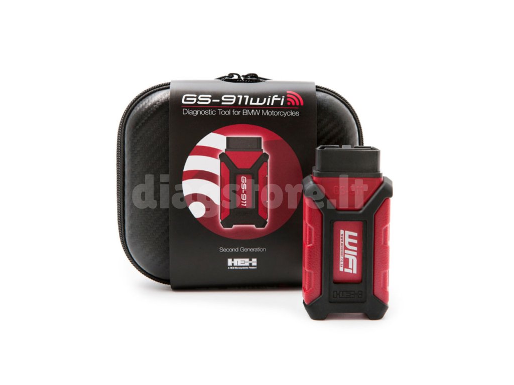 GS-911wifi yra naujos kartos populiari BMW motociklų diagnostika. Palaiko naujausią K001 platformą, naudojamą K1600GT/GTL, R1200GS LC, R1200GS Adv ALC, R1200GS Adv ALC, R1200RT LC, S1000R, C-evolution ir kituose modeliuose. Kaip ir ankstesnėje kartoje, diagnostikos funkcijos suskirstytos į dvi dalis - Energetinę ir Tarnybinę. Diagnostiką galima prijungti prie kompiuterio per USB arba "Wi-Fi" ryšį. Jei esate kelyje, GS911 taip pat galima valdyti mobiliuoju telefonu arba planšetiniu kompiuteriu. Šiame modelyje įrengta OBD-II jungtis. Norėdami prijungti motociklus su apvaliu 10 kontaktų lizdu, turite įsigyti adapterį arba pasirinkti modelį su 10 kontaktų jungtimi.
