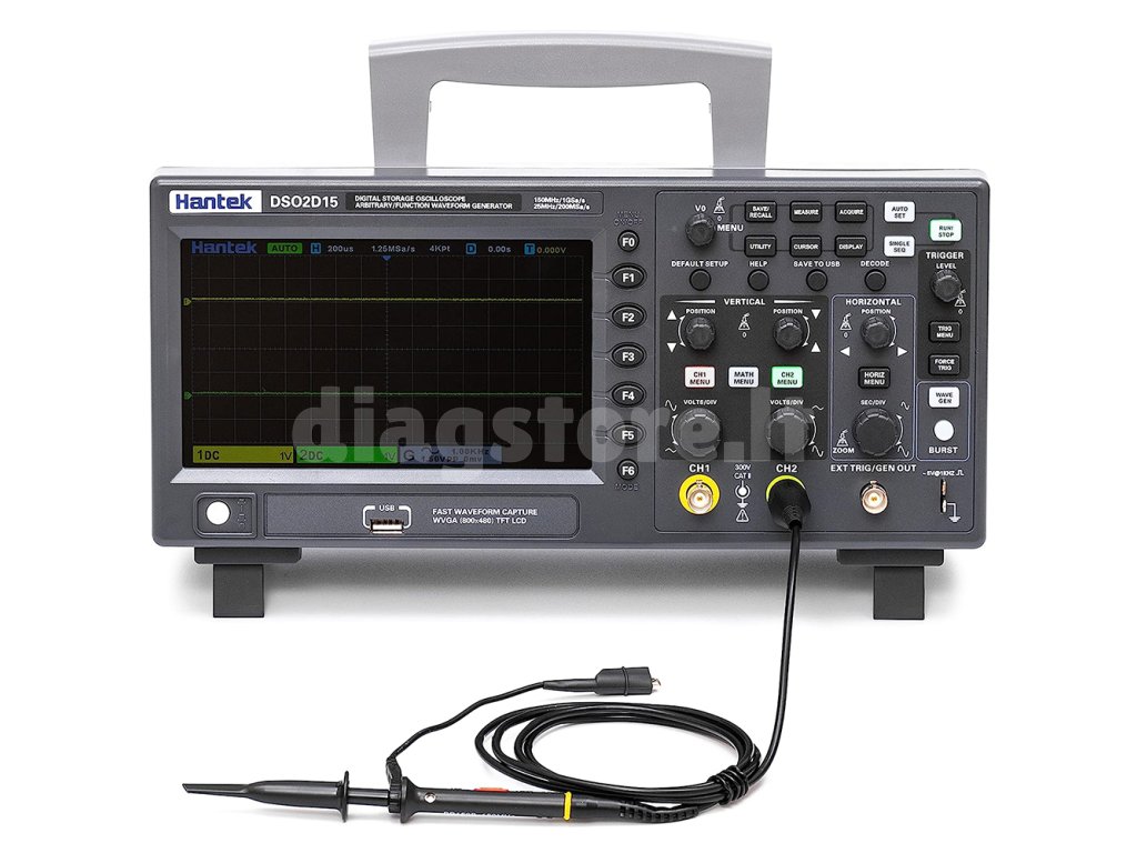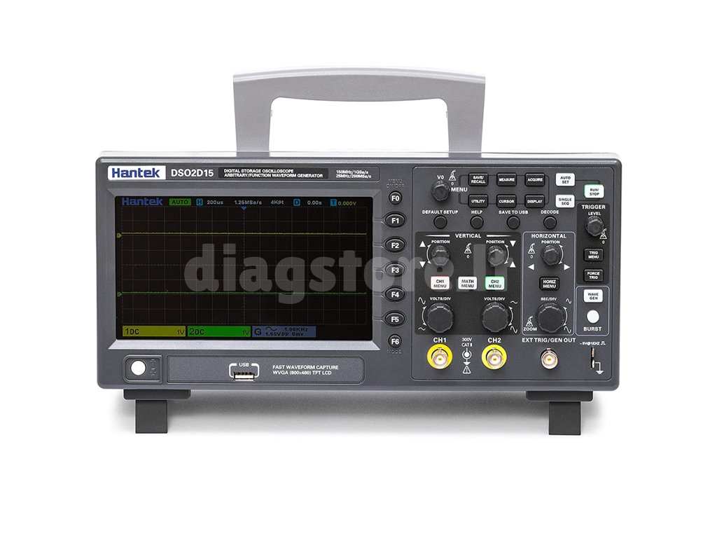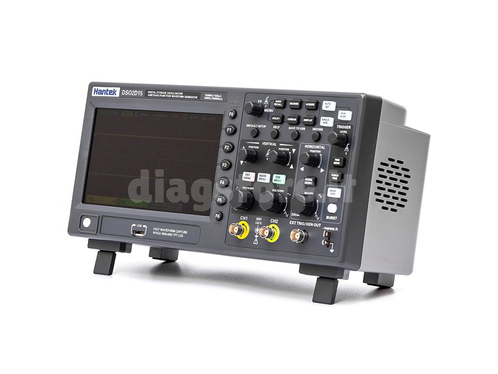 "Hantek DSO2D15" yra paprastas dviejų kanalų osciloskopas, tačiau jis gali nustebinti savo funkcijomis ir tikrai patiks tiek mėgėjams, tiek pažengusiems naudotojams. Jis turi 150 MHz dažnių juostos plotį ir įmontuotą funkcijų generatorių, taip pat turi I2C, SPI, UART/RS232 ir CAN dekodavimo ir Launch galimybes. DSO2D15 turi greičio ėmimo dažnį iki 1GSa/s, o atminties gylis yra 8Mpts, be to, jis gali matuoti kintamąją ir nuolatinę srovę iki 300 VRMS. Oscilografas yra pasyviai aušinamas, be ventiliatoriaus, todėl jis veikia visiškai tyliai. Taip pat yra USB sąsaja matavimo rezultatams įrašyti į kompiuterį arba atminties kortelę.