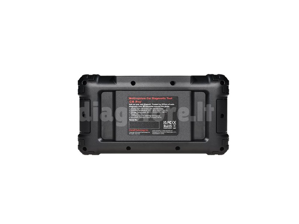 iCarsoft CR PRO+ yra diagnostinis skeneris, skirtas prijungti prie visų markių automobilių. Prietaisas turi 4,3 TFT ekraną ir yra paprastas naudoti. Įrenginio programinė įranga atnaujinama per kompiuterį. Įrenginys turi platų palaikomų kalbų spektrą. Palaikomi 1996-2020 m. pagaminti automobiliai.Prietaisas leidžia detaliai diagnozuoti visus mazgus, taip pat siūlo daugybę aptarnavimo funkcijų, pavyzdžiui, aptarnavimo intervalų atstatymą, DPF regeneraciją, elektrinio stovėjimo stabdžio diagnostiką ir atleidimą, purkštukų kodavimą, akumuliatoriaus registravimą ir kt. Prietaisas prie automobilio prijungiamas OBD-II kabeliu.