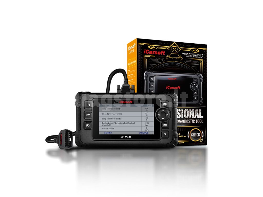 iCarsoft JP V3.0 yra diagnostikos įrankis, leidžiantis prisijungti prie visų Daewoo, Honda, Hyundai, Infinity, Isuzu, Kia, Lexus, Nissan, Mazda, Mitsubishi, Mitsubishi, Subaru ir Toyota transporto priemonių valdymo blokų . Prietaisas turi 4 spalvotą ekraną ir yra paruoštas naudoti. Įrenginio programinės įrangos atnaujinimai yra visiškai nemokami ir atliekami per kompiuterį (pridedamas USB laidas). Prietaisas turi platų palaikomų kalbų spektrą. Palaikomi 1996-2020 m. automobiliai.Prietaisas leidžia atlikti išsamią visų agregatų diagnostiką, taip pat siūlo daugybę aptarnavimo funkcijų, pavyzdžiui, aptarnavimo intervalų atstatymą, DPF regeneraciją, elektrinio stovėjimo stabdžio diagnostiką ir atleidimą, purkštukų kodavimą, akumuliatoriaus registravimą ir kt. Prietaisas prie automobilio prijungiamas OBD-II kabeliu.