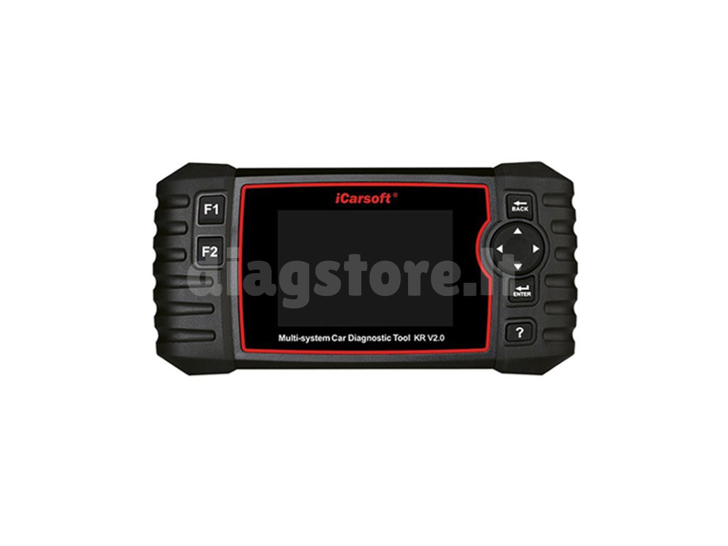 iCarsoft KR V2.0 yra diagnostikos įrankis, leidžiantis prisijungti prie visų Daewoo, Hyundai ir Kia automobilių valdymo blokų. Prietaisas turi 4 spalvotą ekraną ir yra paruoštas naudoti. Įrenginio programinės įrangos atnaujinimai yra visiškai nemokami ir atliekami per kompiuterį (pridedamas USB laidas). Prietaisas turi platų palaikomų kalbų spektrą. Palaikomi automobiliai nuo 1996 iki 2016 m.iCarsoft skeneris leidžia atlikti išsamią visų agregatų diagnostiką, taip pat siūlo 6 aptarnavimo funkcijas, pavyzdžiui, aptarnavimo intervalų atstatymą, DPF regeneraciją, elektrinio stovėjimo stabdžio diagnostiką ir atleidimą, akumuliatoriaus registravimą ir daugelį kitų. Įrenginys prie automobilio prijungiamas OBD-II kabeliu.