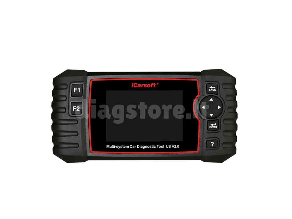 iCarsoft US V2.0 yra diagnostikos įrankis, leidžiantis prisijungti prie visų Chrysler, Ford, General Motors, Holden ir Jeep automobilių valdymo blokų. Prietaisas turi 4 spalvotą ekraną ir yra paruoštas naudoti. Įrenginio programinės įrangos atnaujinimai yra visiškai nemokami ir atliekami per kompiuterį (pridedamas USB laidas). Prietaisas turi platų palaikomų kalbų spektrą. Palaikomi 1996-2016 m. automobiliai.iCarsoft skeneris leidžia atlikti išsamią visų agregatų diagnostiką, taip pat siūlo 6 aptarnavimo funkcijas, pavyzdžiui, aptarnavimo intervalų atstatymą, DPF regeneraciją, elektrinio stovėjimo stabdžio diagnostiką ir atleidimą, akumuliatoriaus registravimą ir daugelį kitų funkcijų. Įrenginys prie automobilio prijungiamas OBD-II kabeliu.