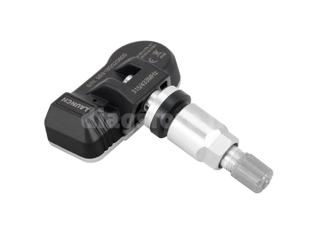 Universalus Launch TPMS jutiklis, skirtas tiek 433Mhz, tiek 315MHz dažniams. Įskaitant metalinį vožtuvą. TPMS jutikliams klonuoti i-TPMS plėtinys modulį galima naudoti su Launch diagnostika.