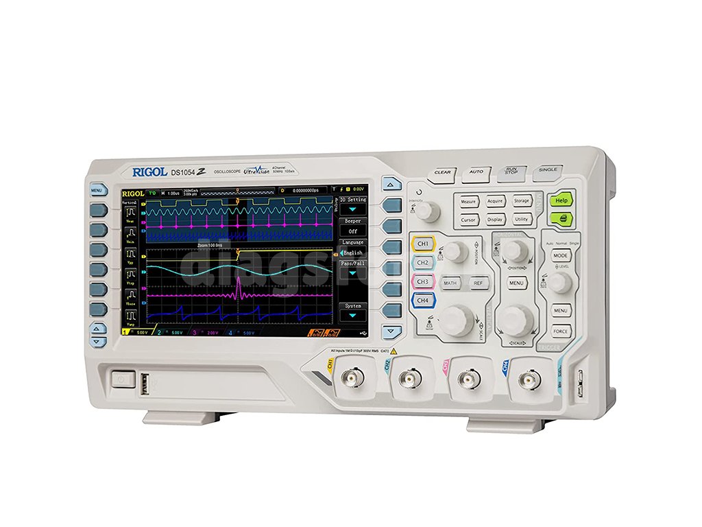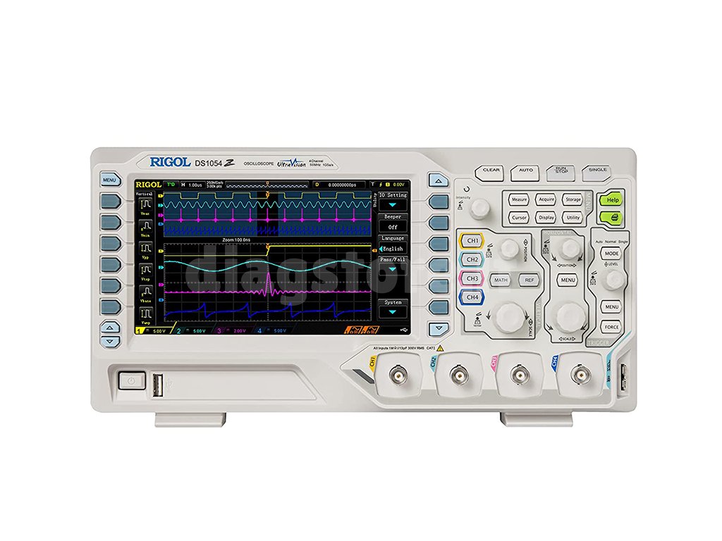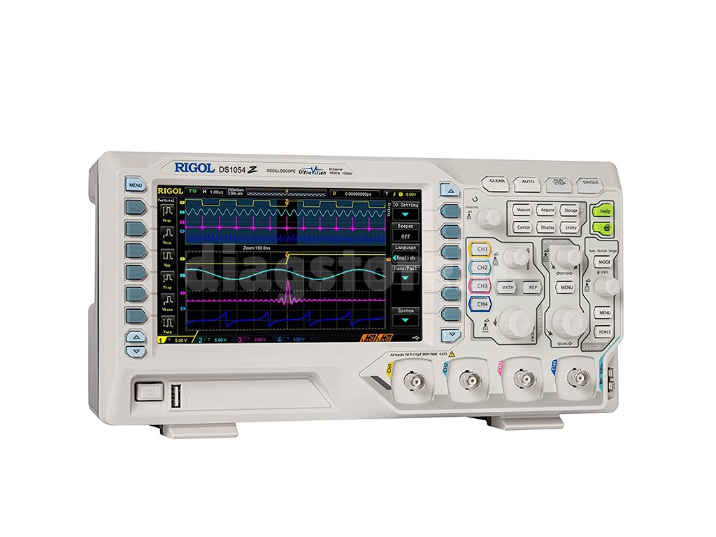 Rigol DS1054Z - tai 4 kanalų osciloskopas su 1GS/s diskretizavimo dažniu ir 12 milijonų taškų atmintimi. Naudojant atnaujinimo dažnį 30000 wfm/s, galima greitai išanalizuoti signalą ir surasti bet kokias problemas, kurių gali būti signale. Modelio pralaidumas dalijamas iš aktyviųjų kanalų skaičiaus, 250 MS/s (4 aktyvūs kanalai), 500 MS/s (2 aktyvūs kanalai), 1GS/s (1 aktyvus kanalas). Šio prietaiso atmintis yra 24Mpts, padalinta tarp keturių kanalų. Prietaisas turi USB sąsają, skirtą duomenims perkelti į kompiuterį arba atminties kortelę.