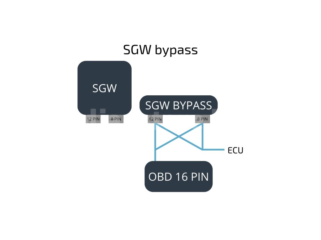 SGW modulio funkcionalumas sukurtas siekiant užkirsti kelią neteisėtai prieigai prie automobilio valdymo modulių (įsilaužimui), jo tiltas riboja šį funkcionalumą. Tai svarbus trukdis automobilio saugumo vientisumui, todėl šį įrenginį naudojate savo rizika. Dėl to taip pat gali būti prarasta automobilio teisinė garantija. SGW aplinkkelis pirmiausia naudojamas tam, kad būtų galima prisijungti prie bet kokios diagnostikos, todėl primygtinai rekomenduojame jį iš naujo sumontuoti atlikus diagnostikos darbus.